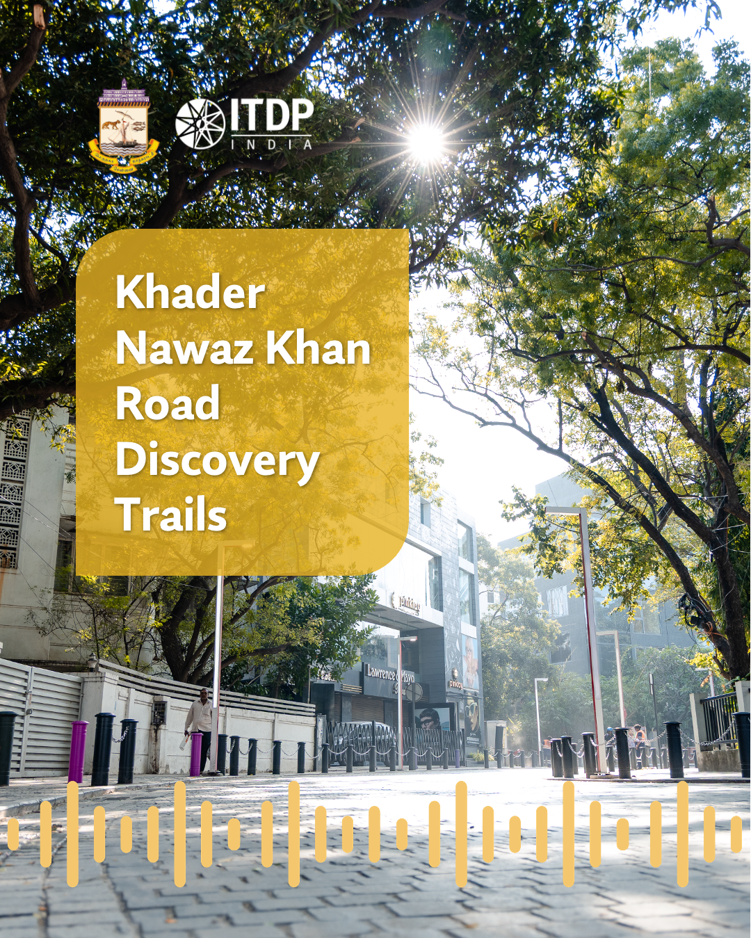 To begin the self-guided audio tour, head to the first stop on Khader Nawaz Khan Road. Once you’ve arrived, scroll down and press play on the first audio.